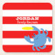 Red Nautical Blue Crab Personalized Square Paper Coaster