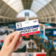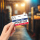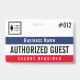 Visitor pass badge with a simple design in black, white, navy blue, and red. Authorized guest is written across the guest badge, but you can change the wording to suit your needs. Personalize further with your business logo and the name of the company.