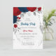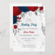 red & navy blue flowers silver birthday party invitation