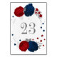 Romantic dark red & navy blue flowers with silver leaves botanical wedding table number card.