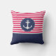 Red Navy Blue Nautical Anchor Design Custom Name Throw Pillow