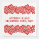 Norwegian design, both traditional and modern, became very popular in the United States in the fabulous 1950's. Red Norwegian "lace" on snowy white, with a cozy matching font, makes for a unique and beautiful wedding design.