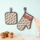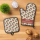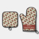 A charming pot holder and oven mitt for Mediterranean cuisine lovers featuring a red olive pattern . Personalize it with your own text , or keep it as it is .