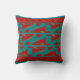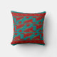 Red on Turquoise Bordered Mediterranean Panels Throw Pillow