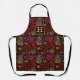 Red One Line Artistic Drawing Pattern Monogram Apr Apron