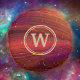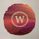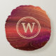 Red Orange and Purple Sparkly Swirls with Initial Round Pillow