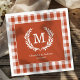Red-Orange Gingham Monogram Crest Custom Napkin