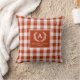 Elegant & Rustic Red-Orange Gingham Monogram Crest Throw Pillow.