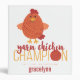 You fought the yarn chicken ... and won!!! Celebrate with this cute design of a yarn chicken and the words declaring you a yarn chicken champion. Customize with your name on the front and the text on the spine. Back pattern features a cute little chicken made of a ball of wool as the body with a background of wavy grey pencil lines and balls of yarn. Available in red/orange, green/brown, teal/rust and blue/purple. Matching products available.