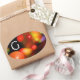 RED ORANGE YELLOW BLACK FRACTAL BUBBLES MONOGRAM OVAL STICKER