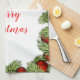 This seasonal kitchen towel features a festive retro red ornament design with touches of Christmas tree greenery. Personalize this holiday decor towel with your own text or buy as shown with Merry Christmas in a script font. This Christmas kitchen towel is fully customizable so you can modify it for your holiday needs.