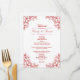 This chic ornate Floral Wedding Menu features ornate Floral Decorations on each corner.