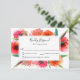 This colourful contemporary wedding RSVP card features painted poppies in shades of red, watermelon, pink and orange with scattered green leaves for a bright and beautiful combination. It's a lovely choice for spring and summer weddings and works well with warm hued colour schemes. The floral elements used in this design were adapted from flowers by createthecut.