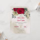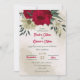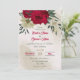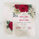 Unique wedding invitation featuring romantic red and pale yellow flowers and green leaves.