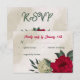 Unique response card RSVP featuring romantic red and pale yellow flowers and green leaves.