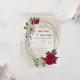 Unique wedding invitation featuring romantic red and pale yellow flowers and green leaves on a beautiful geometric frame.