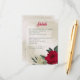 Unique wedding enclosure card featuring romantic red and pale yellow flowers and green leaves.