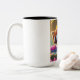 Red pand laying on a log in lotus pond Two-Tone coffee mug