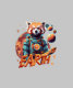 Red panda astronaut on Mars dark orange text reads Earth with planet background.