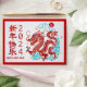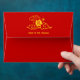 Bold, graphic red foil “Happy New Year” typography in both Chinese and English and a stunning visual of a graphic multi colour cut paper dragon, clouds and stars, overlay a traditional Asian light grey circle pattern and red border on the front. On the back flap, a cloud and star visual, along with customizable copy, overlay red. Faux gold foil lines the inside of the envelope. Feel the warmth and joy of the holiday season whenever you give this stylish, yet modern, personalized 2024 Chinese Lunar New Year of the Dragon Hong Bao red envelope. Make sure someone special receives this lucky envelope!