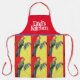 Red Parrot Rosella Colorful Blue Dads Kitchen Apron, with a fully customizable name. Designed from my original garden photo & writing.