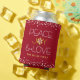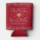 “Peace, joy & love.” A fun, playful, faux gold glitter and white snowflake illustration and modern, sans serif typography on a rich, red background help you usher in the holiday season. White confetti dots top and bottom complete the look. Feel the warmth and joy of the holidays whenever you use this stylish and modern Christmas can cooler. Personalize with your name, other message, or leave blank. Matching cards, envelopes, stickers, tote bags, wrapping paper, serving trays, home décor, and more are also available. A great finishing touch for your holiday party!
