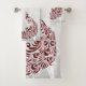 Add an elegant touch to your bath with a Red Peacock Personalized Bath Towel Set. Towel set design features a vibrant red peacock, a soft white leaf vine against a light grey grunge background with an area to personalize with your name. Additional gift items available with this design as well as a variety of colours.