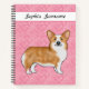 Red Pembroke Welsh Corgi On Pink Hearts With Name Notebook