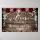 Un grand panneau d'accueil mariage de 24 x 36 pouces avec vos noms et date mariage. Une suite luxueuse d'aquarelle fleurie. De somptueuses pivoines rouges en cascade éclatent au milieu de frondes de verdure argentée et de vapeurs d'art floral délicat. Annoncez votre mariage dans une invitation vintage moderne et élégante avec une police calligraphique swashed manuscrite.