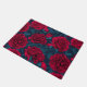 Red peony garden on dark blue doormat