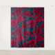 Red peony garden on dark blue tapestry