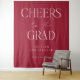 Create an elegant and trendy photo backdrop for your graduation party. Design features "Cheers to the Grad" in modern elegant typography. Shown in red and white, but all colours are editable by you. Personalize the template to add your graduate's name and year. © Kimbellished, LLC