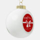 Red and white personalized Christmas ball ornaments in a shape of snowflake with bow and customizable text