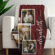 Red Personalized With Name 5 Photo Collage Fleece Blanket
