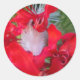Natural Backdrop: The green background serves as a complementary canvas, highlighting the vibrant colours of the petals and feather.