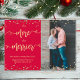 Gold Red Photo Christmas Pregnancy Announcement Cards. Expecting parents! Modern gold swirly hand lettered typography script "the more the merrier" card to share your happy news with family and friends in the holiday season. Features above and the bottom gold confetti frame on red background. You can personalize the design by replacing the simple texts and vertical photo. #3351 If you need help or matching items, please contact to me!
