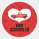 This stick has a red background with a subtle red pattern of hearts. In the centre, there's a heart with a red pick up truck. Text can be customized. These stickers coordinate with the "Red Pick Up Truck Childs Valentine Card", for children. It can be used on the envelope or as a seal for gift bags.