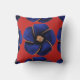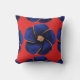 Vibrant red pillow with blue silk flower clustered with diamonds and gold. Classic look or bright to bring in Spring.