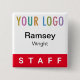 Red Pinback Staff Badge Event Logo Nom du Carré
