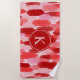Red Pink Abstract Brushstrokes Pattern Monogram Beach Towel