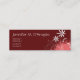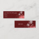 Trendy business card design of white abstract flower silhouettes on a red background with pink splats. Customization is easy.