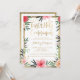 Red Pink floral gold border First Holy Communion Invitation