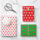 Red & pink heart pattern on green, red & white wrapping paper sheet
