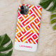 This design features a stunning combination of pink, red, yellow, orange, and white abstract art motifs. The shapes are square and rectangular, and have square angles, creating a dynamic and rhythmic effect. The pattern is both ornate and elegant, with a touch of funkiness and hipster flair. There is also room to customize or personalize with a name, monogram, initials, or text of your choice. Whether you are looking for a chic and modern style or a vintage and retro trend vibe, this pattern will suit your taste and personality. This design is available in Apple iPhone 6, 7, and 8 Plus, 10 or X, XR, XS, 11, 12, 13, 14 Mini, 15 Plus, and Pro Max cellphone cases. Show off your style, look fashionable, and feel stylish with a unique design on a mobile device accessory of your choice.