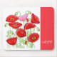 Red Pink Poppies Art Custom Monogram Personalized Mouse Pad