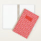 This spiral notebook features an allover tossed daisy pattern in bright pink on a bold red background — fun, graphic, and very retro. "NOTES" sits in a centered label at the top with a personalized name underneath in clean lowercase lettering. The gold spiral binding adds a warm finishing touch. A great pick for a teen, a back-to-school gift, or anyone who likes their desk supplies to make a statement.