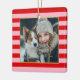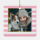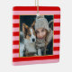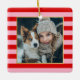 Red Pink Stripes Christmas Photo Ceramic Ornament