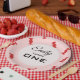 A vibrant paper plate designed to make your sweet treats stand out. The background is a soft, playful pink, creating a warm and inviting canvas. On this charming pink backdrop, you’ll find an array of red toffees, each depicted with a glossy finish that highlights their candy-coated allure. The toffees are illustrated with subtle details like swirls or sparkles, enhancing their candy-like appearance. The overall effect is a delightful, eye-catching design that’s perfect for adding a touch of fun and festivity to any gathering or celebration.