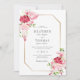 Red Pink Watercolor Roses Gold Frame Wedding Invitation