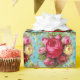 Elegant ,colourful vintage floral design,red pink yellow cabbage rose on aqua blue teal background.with a black stripe, classy monogram design with bright colours.Easily customizable with your initials for wedding,special occasions,birthdays,sweet 16,quinceanera,bridal showers,anniversary celebration announcements